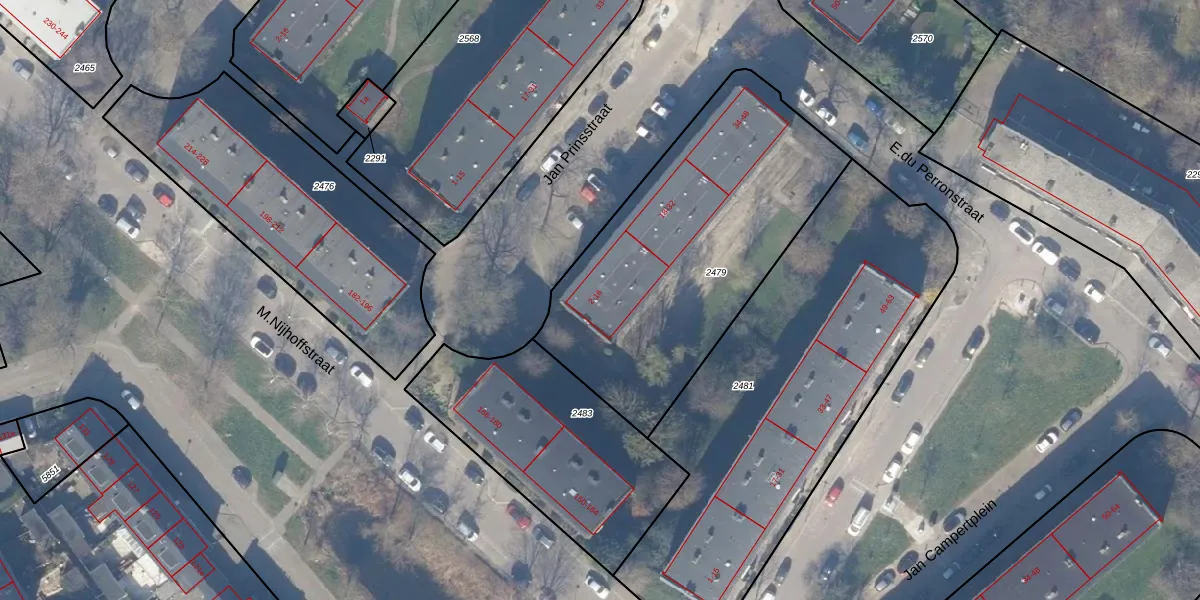 Het perceel waarop Jan Prinsstraat 4 staat heeft een oppervlakte van 1481 m². Dit is een zeer groot perceel. De perceeloppervlakte wordt geregistreerd door het Kadaster. Gedetailleerde informatie over de maten van dit perceel kunt u vinden in het rapport Kadastrale kaart met maatvoering van Jan Prinsstraat 4.