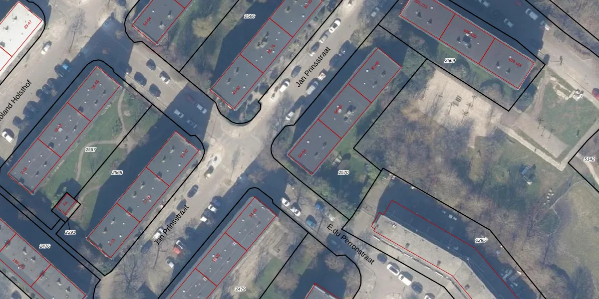 Het perceel waarop Jan Prinsstraat 50 staat heeft een oppervlakte van 1437 m². Dit is een zeer groot perceel. De perceeloppervlakte wordt geregistreerd door het Kadaster. Gedetailleerde informatie over de maten van dit perceel kunt u vinden in het rapport Kadastrale kaart met maatvoering van Jan Prinsstraat 50.