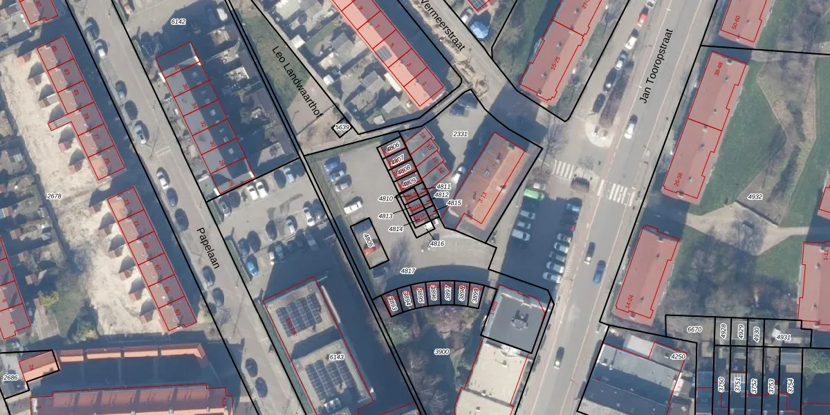Gebruik de zoekbalk of klik op een perceel voor informatie over de adressen binnen dit perceel.