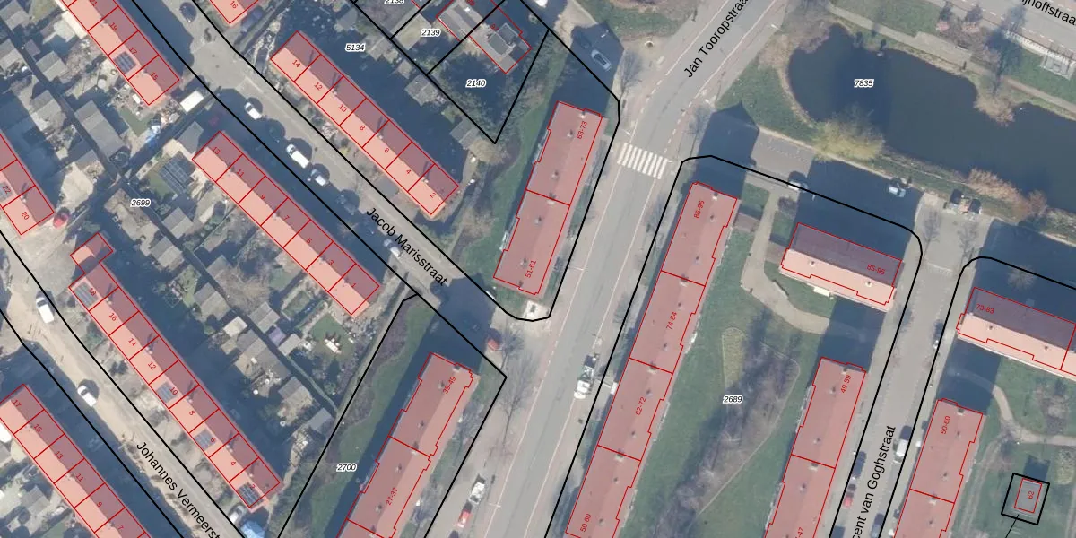 Het perceel waarop Jan Tooropstraat 51 staat heeft een oppervlakte van 3110 m². Dit is een zeer groot perceel. De perceeloppervlakte wordt geregistreerd door het Kadaster. Gedetailleerde informatie over de maten van dit perceel kunt u vinden in het rapport Kadastrale kaart met maatvoering van Jan Tooropstraat 51.
