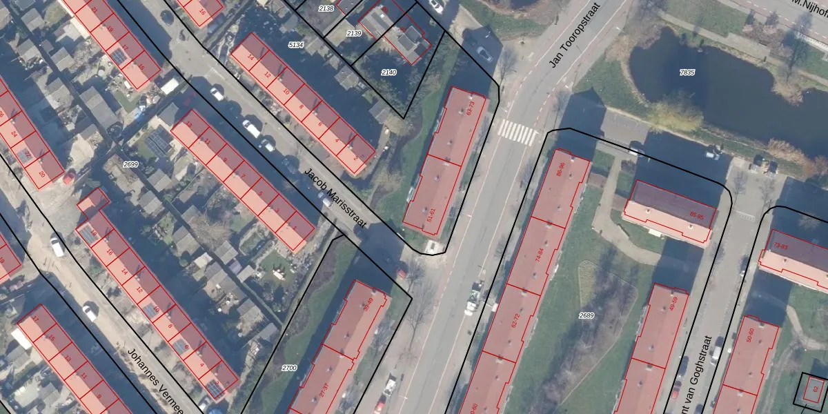 Het perceel waarop Jan Tooropstraat 55 staat heeft een oppervlakte van 3110 m². Dit is een zeer groot perceel. De perceeloppervlakte wordt geregistreerd door het Kadaster. Gedetailleerde informatie over de maten van dit perceel kunt u vinden in het rapport Kadastrale kaart met maatvoering van Jan Tooropstraat 55.