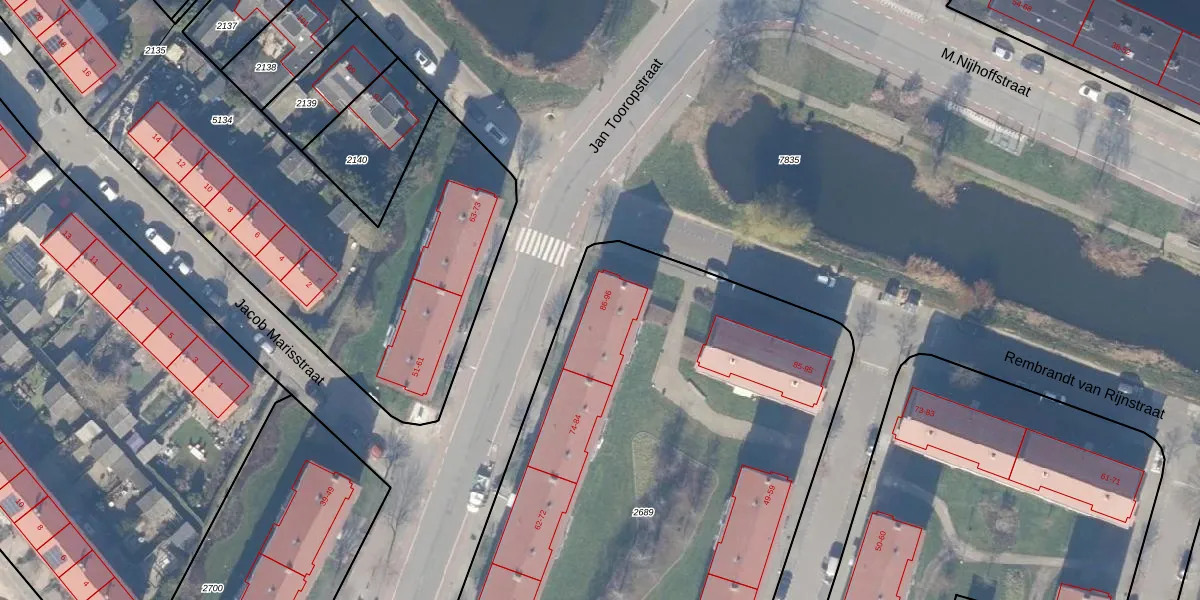 Het perceel waarop Jan Tooropstraat 92 staat heeft een oppervlakte van 3541 m². Dit is een zeer groot perceel. De perceeloppervlakte wordt geregistreerd door het Kadaster. Gedetailleerde informatie over de maten van dit perceel kunt u vinden in het rapport Kadastrale kaart met maatvoering van Jan Tooropstraat 92.