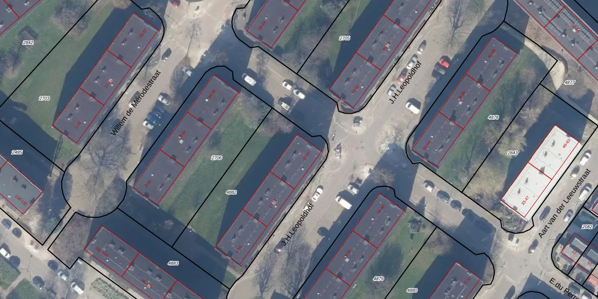 J.H.Leopoldhof 45 is gelegen op kadastraal perceel WEE02B4882. Deze kadastrale aanduiding is uniek en wordt gebruikt door het Kadaster om eigendomsrechten en andere zakelijke rechten vast te leggen. Het perceel maakt onderdeel uit van de kadastrale gemeente Weesp.