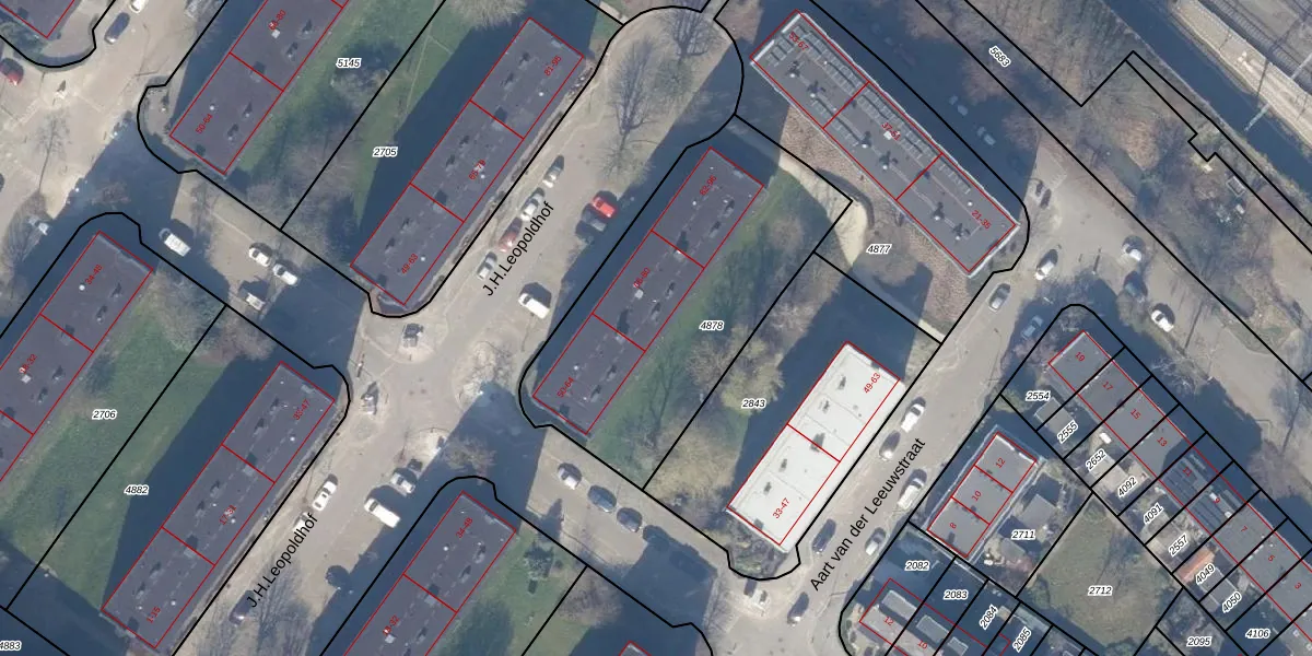 Het perceel waarop J.H.Leopoldhof 72 staat heeft een oppervlakte van 1362 m². Dit is een zeer groot perceel. De perceeloppervlakte wordt geregistreerd door het Kadaster. Gedetailleerde informatie over de maten van dit perceel kunt u vinden in het rapport Kadastrale kaart met maatvoering van J.H.Leopoldhof 72.