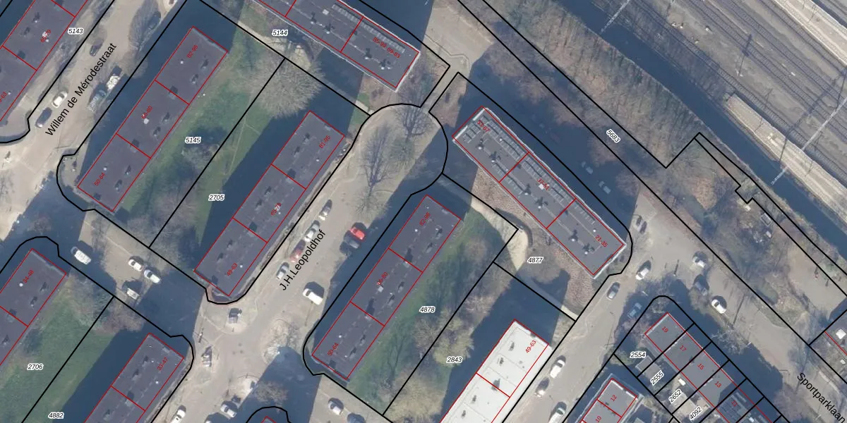 Het perceel waarop J.H.Leopoldhof 90 staat heeft een oppervlakte van 1362 m². Dit is een zeer groot perceel. De perceeloppervlakte wordt geregistreerd door het Kadaster. Gedetailleerde informatie over de maten van dit perceel kunt u vinden in het rapport Kadastrale kaart met maatvoering van J.H.Leopoldhof 90.