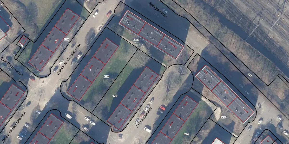 Het perceel waarop J.H.Leopoldhof 95 staat heeft een oppervlakte van 1394 m². Dit is een zeer groot perceel. De perceeloppervlakte wordt geregistreerd door het Kadaster. Gedetailleerde informatie over de maten van dit perceel kunt u vinden in het rapport Kadastrale kaart met maatvoering van J.H.Leopoldhof 95.