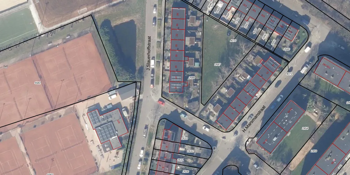 Het perceel waarop J.Slauerhoffstraat 12 staat heeft een oppervlakte van 2512 m². Dit is een zeer groot perceel. De perceeloppervlakte wordt geregistreerd door het Kadaster. Gedetailleerde informatie over de maten van dit perceel kunt u vinden in het rapport Kadastrale kaart met maatvoering van J.Slauerhoffstraat 12.