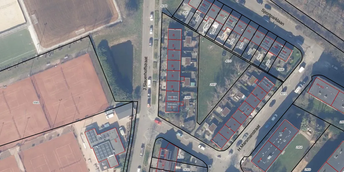 Het perceel waarop J.Slauerhoffstraat 16 staat heeft een oppervlakte van 2512 m². Dit is een zeer groot perceel. De perceeloppervlakte wordt geregistreerd door het Kadaster. Gedetailleerde informatie over de maten van dit perceel kunt u vinden in het rapport Kadastrale kaart met maatvoering van J.Slauerhoffstraat 16.