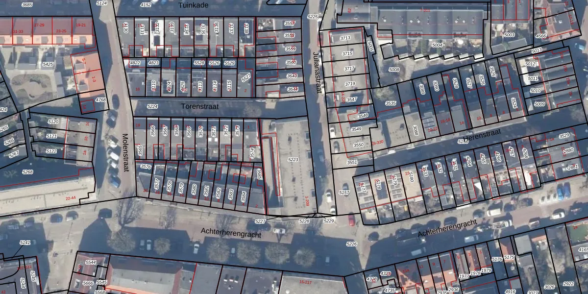 Het perceel waarop Julianastraat 107 staat heeft een oppervlakte van 564 m². Dit is een groot perceel. De perceeloppervlakte wordt geregistreerd door het Kadaster. Gedetailleerde informatie over de maten van dit perceel kunt u vinden in het rapport Kadastrale kaart met maatvoering van Julianastraat 107.