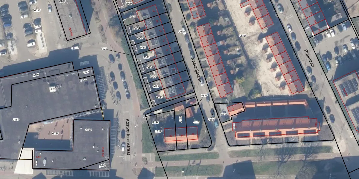 Gebruik de zoekbalk of klik op een perceel voor informatie over de adressen binnen dit perceel.