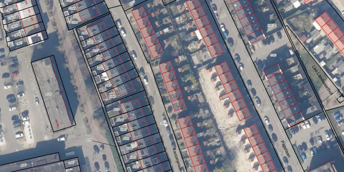 Kastanjelaan 22 is gelegen op kadastraal perceel WEE02B2678. Deze kadastrale aanduiding is uniek en wordt gebruikt door het Kadaster om eigendomsrechten en andere zakelijke rechten vast te leggen. Het perceel maakt onderdeel uit van de kadastrale gemeente Weesp.