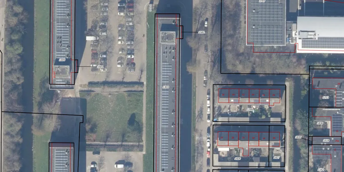 Het perceel waarop Keulsevaartstraat 119 staat heeft een oppervlakte van 1877 m². Dit is een zeer groot perceel. De perceeloppervlakte wordt geregistreerd door het Kadaster. Gedetailleerde informatie over de maten van dit perceel kunt u vinden in het rapport Kadastrale kaart met maatvoering van Keulsevaartstraat 119.