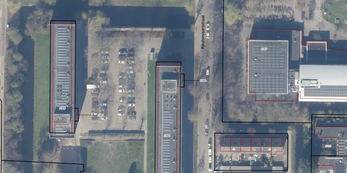 Het perceel waarop Keulsevaartstraat 125 staat heeft een oppervlakte van 1877 m². Dit is een zeer groot perceel. De perceeloppervlakte wordt geregistreerd door het Kadaster. Gedetailleerde informatie over de maten van dit perceel kunt u vinden in het rapport Kadastrale kaart met maatvoering van Keulsevaartstraat 125.
