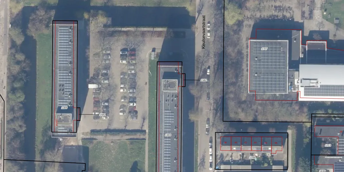 Het perceel waarop Keulsevaartstraat 225 staat heeft een oppervlakte van 1877 m². Dit is een zeer groot perceel. De perceeloppervlakte wordt geregistreerd door het Kadaster. Gedetailleerde informatie over de maten van dit perceel kunt u vinden in het rapport Kadastrale kaart met maatvoering van Keulsevaartstraat 225.