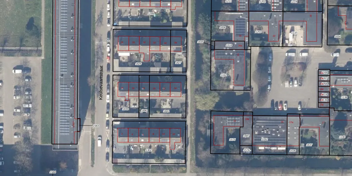 Het perceel waarop Keulsevaartstraat 24 staat heeft een oppervlakte van 505 m². Dit is een groot perceel. De perceeloppervlakte wordt geregistreerd door het Kadaster. Gedetailleerde informatie over de maten van dit perceel kunt u vinden in het rapport Kadastrale kaart met maatvoering van Keulsevaartstraat 24.