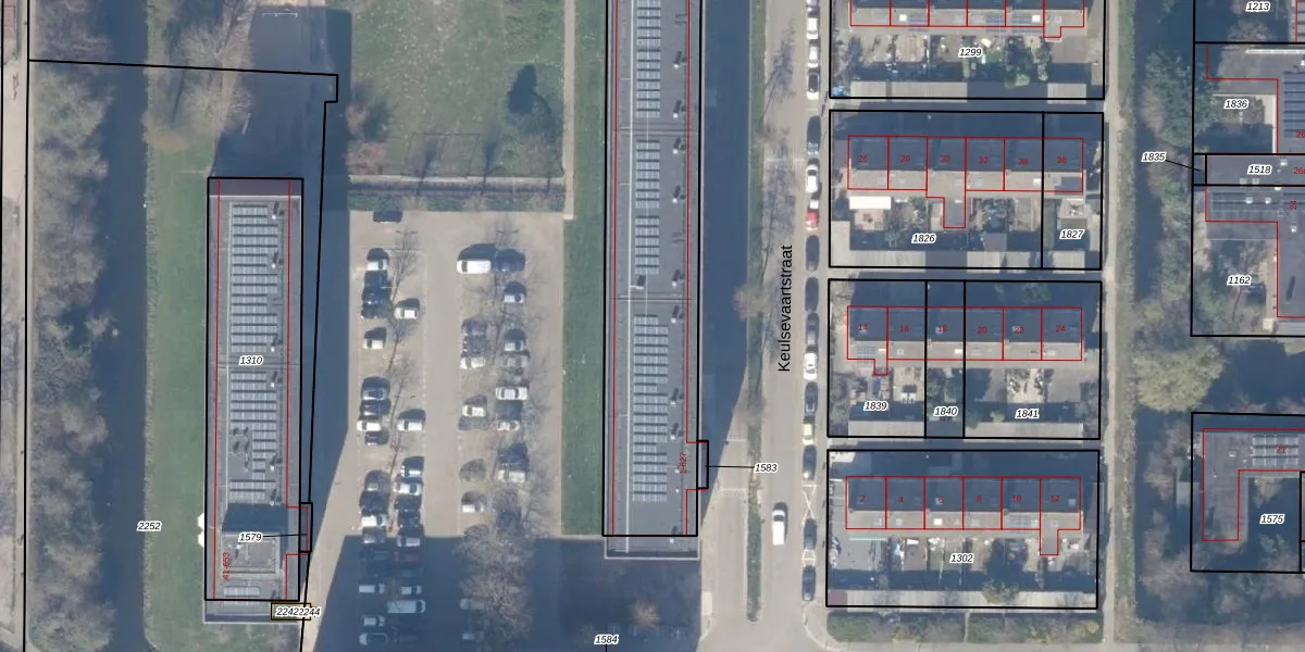 Het perceel waarop Keulsevaartstraat 307 staat heeft een oppervlakte van 1877 m². Dit is een zeer groot perceel. De perceeloppervlakte wordt geregistreerd door het Kadaster. Gedetailleerde informatie over de maten van dit perceel kunt u vinden in het rapport Kadastrale kaart met maatvoering van Keulsevaartstraat 307.
