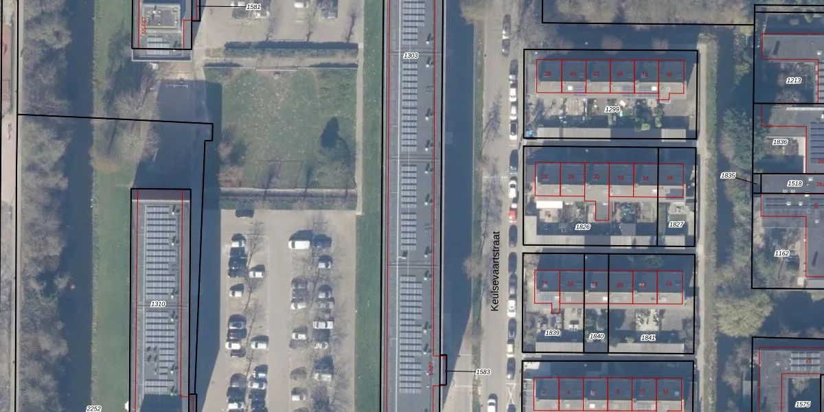 Het perceel waarop Keulsevaartstraat 311 staat heeft een oppervlakte van 1877 m². Dit is een zeer groot perceel. De perceeloppervlakte wordt geregistreerd door het Kadaster. Gedetailleerde informatie over de maten van dit perceel kunt u vinden in het rapport Kadastrale kaart met maatvoering van Keulsevaartstraat 311.