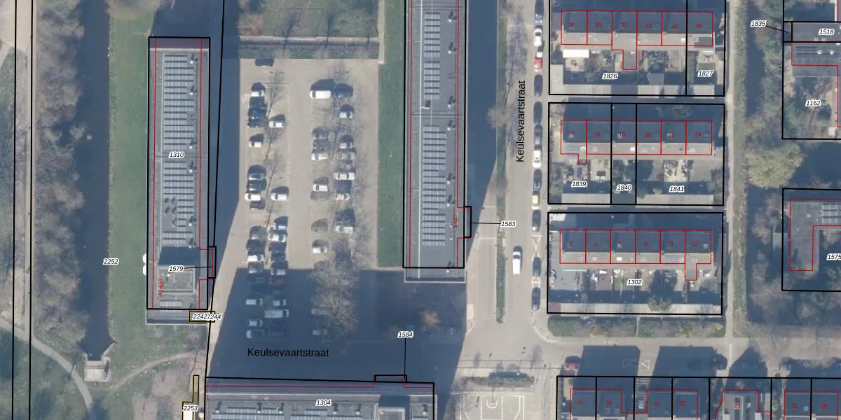 Het perceel waarop Keulsevaartstraat 503 staat heeft een oppervlakte van 1877 m². Dit is een zeer groot perceel. De perceeloppervlakte wordt geregistreerd door het Kadaster. Gedetailleerde informatie over de maten van dit perceel kunt u vinden in het rapport Kadastrale kaart met maatvoering van Keulsevaartstraat 503.