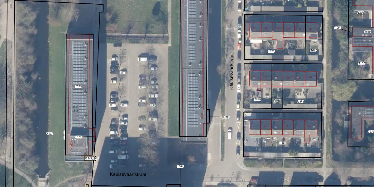 Het perceel waarop Keulsevaartstraat 505 staat heeft een oppervlakte van 1877 m². Dit is een zeer groot perceel. De perceeloppervlakte wordt geregistreerd door het Kadaster. Gedetailleerde informatie over de maten van dit perceel kunt u vinden in het rapport Kadastrale kaart met maatvoering van Keulsevaartstraat 505.