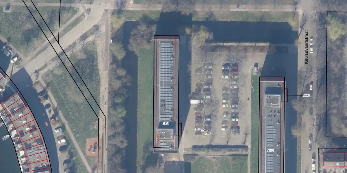 Het perceel waarop Keulsevaartstraat 59 staat heeft een oppervlakte van 941 m². Dit is een groot perceel. De perceeloppervlakte wordt geregistreerd door het Kadaster. Gedetailleerde informatie over de maten van dit perceel kunt u vinden in het rapport Kadastrale kaart met maatvoering van Keulsevaartstraat 59.
