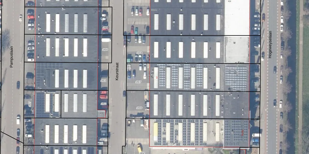 Het perceel waarop Keurstraat 12 staat heeft een oppervlakte van 1565 m². Dit is een zeer groot perceel. De perceeloppervlakte wordt geregistreerd door het Kadaster. Gedetailleerde informatie over de maten van dit perceel kunt u vinden in het rapport Kadastrale kaart met maatvoering van Keurstraat 12.