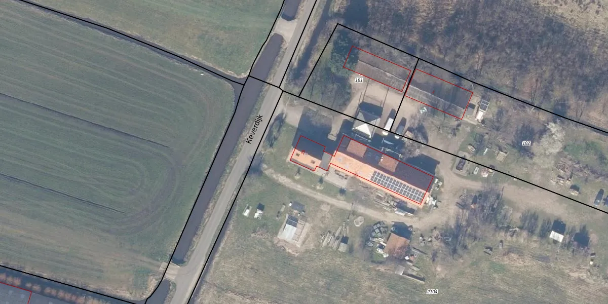 Het perceel waarop Keverdijk 20 staat heeft een oppervlakte van 1,0 ha. Dit is een zeer groot perceel. De perceeloppervlakte wordt geregistreerd door het Kadaster. Gedetailleerde informatie over de maten van dit perceel kunt u vinden in het rapport Kadastrale kaart met maatvoering van Keverdijk 20.