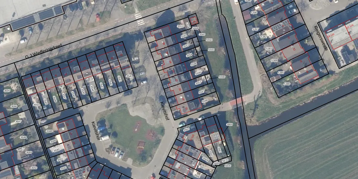 Gebruik de zoekbalk of klik op een perceel voor informatie over de adressen binnen dit perceel.