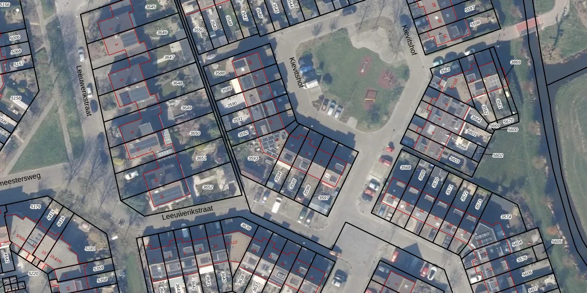 Gebruik de zoekbalk of klik op een perceel voor informatie over de adressen binnen dit perceel.