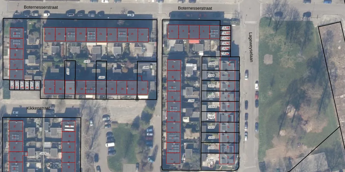 Het perceel waarop Kikkenstraat 16 staat heeft een oppervlakte van 2211 m². Dit is een zeer groot perceel. De perceeloppervlakte wordt geregistreerd door het Kadaster. Gedetailleerde informatie over de maten van dit perceel kunt u vinden in het rapport Kadastrale kaart met maatvoering van Kikkenstraat 16.