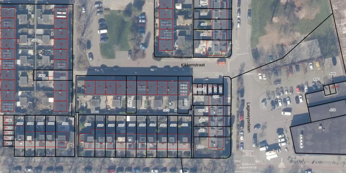 Het perceel waarop Kikkenstraat 3 staat heeft een oppervlakte van 1263 m². Dit is een zeer groot perceel. De perceeloppervlakte wordt geregistreerd door het Kadaster. Gedetailleerde informatie over de maten van dit perceel kunt u vinden in het rapport Kadastrale kaart met maatvoering van Kikkenstraat 3.