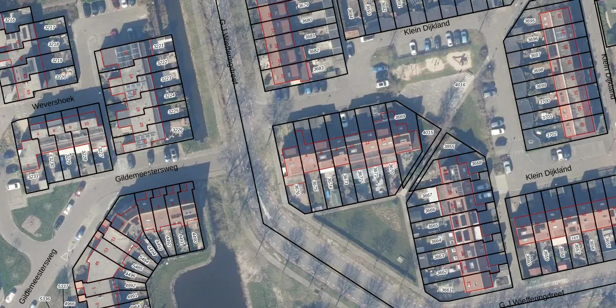 Het adres is gelegen op perceel 3675 in de sectie B en de kadastrale gemeente Weesp. De kadastrale aanduiding is aldus WEE02-B-3675. Het perceel is 152 m² groot. Dat is kleiner dan de gemiddelde perceeloppervlakte in Weesp, dat op 2523,05 m² ligt. Het kleinste perceel in de kadastrale gemeente is 0 m² groot. De grootste perceeloppervlakte is 27,8 ha. Er zijn geen andere adressen aanwezig op het perceel. De laatste wijziging in het de Basisregistratie Kadaster (BRK) was op 18-12-1998.