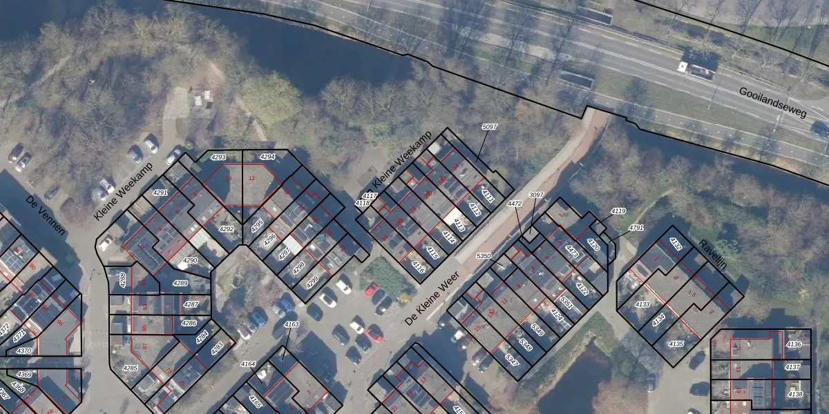 Het adres is gelegen op perceel 4114 in de sectie B en de kadastrale gemeente Weesp. De kadastrale aanduiding is aldus WEE02-B-4114. Het perceel is 106 m² groot. Dat is kleiner dan de gemiddelde perceeloppervlakte in Weesp, dat op 2523,05 m² ligt. De grootste perceeloppervlakte in de kadastrale gemeente is 27,8 ha. De kleinste oppervlakte bedraagt 0 m². Dit is het enige adres dat aanwezig is op het perceel. In de Basisregistratie Kadaster (BRK) werden de grenzen van het perceel geregistreerd op 27-09-2005.