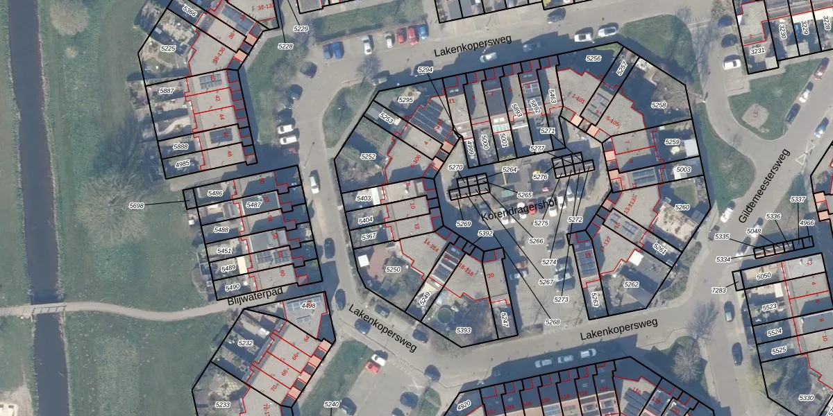 Gebruik de zoekbalk of klik op een perceel voor informatie over de adressen binnen dit perceel.