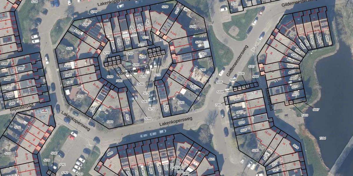 Het perceel waarop Korendragershof 117 staat heeft een oppervlakte van 260 m². Dit is een middelgroot perceel. De perceeloppervlakte wordt geregistreerd door het Kadaster. Gedetailleerde informatie over de maten van dit perceel kunt u vinden in het rapport Kadastrale kaart met maatvoering van Korendragershof 117.