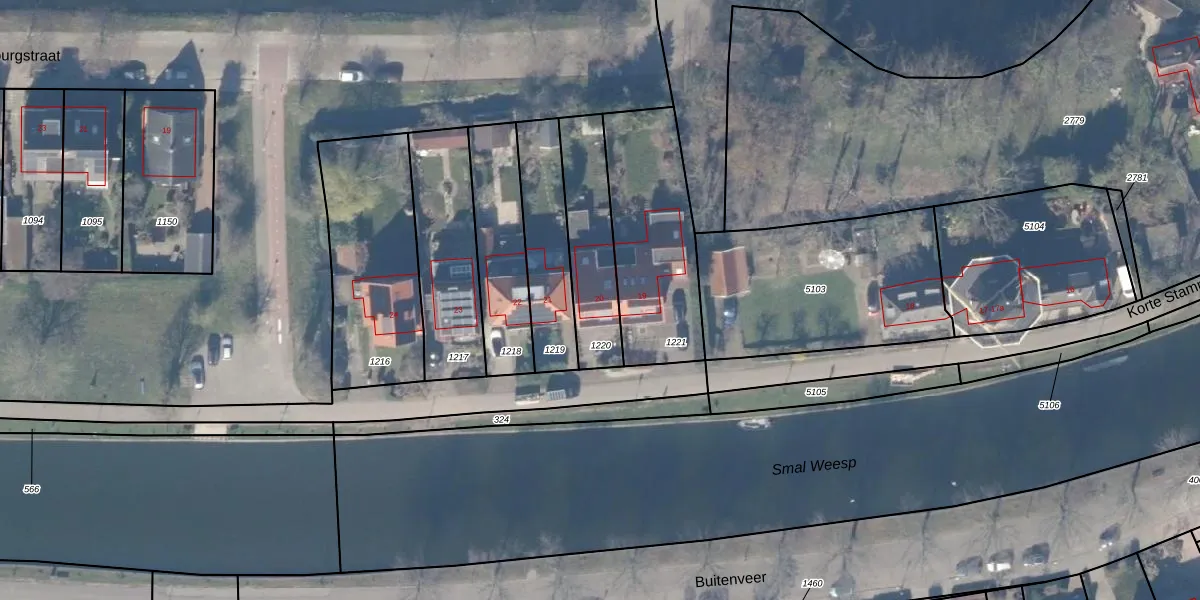 Het adres is gelegen op perceel 1220 in de sectie C en de kadastrale gemeente Weesp. De kadastrale aanduiding is aldus WEE02-C-1220. Het perceel is 320 m² groot. Dat is kleiner dan de gemiddelde perceeloppervlakte in Weesp, dat op 2523,05 m² ligt. Het grootste perceel in de kadastrale gemeente is 27,8 ha. Het kleinste perceel heeft een oppervlakte van 0 m². Op het perceel bevinden zich geen andere adressen. De laatste wijziging in het de Basisregistratie Kadaster (BRK) was op 01-02-2001.
