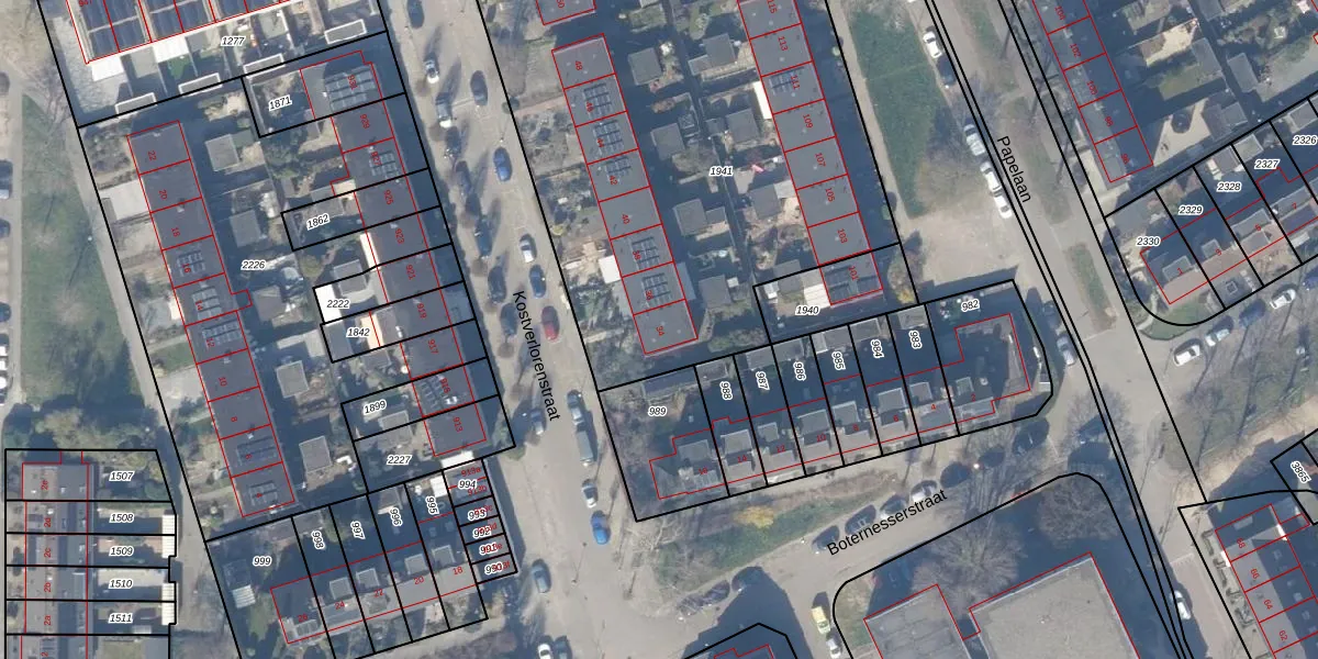 Het perceel waarop Kostverlorenstraat 34 staat heeft een oppervlakte van 4928 m². Dit is een zeer groot perceel. De perceeloppervlakte wordt geregistreerd door het Kadaster. Gedetailleerde informatie over de maten van dit perceel kunt u vinden in het rapport Kadastrale kaart met maatvoering van Kostverlorenstraat 34.