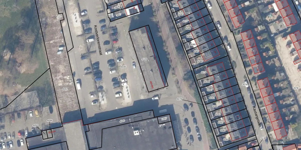 Kostverlorenstraat 863 is gelegen op kadastraal perceel WEE02B4109. Deze kadastrale aanduiding is uniek en wordt gebruikt door het Kadaster om eigendomsrechten en andere zakelijke rechten vast te leggen. Het perceel maakt onderdeel uit van de kadastrale gemeente Weesp.