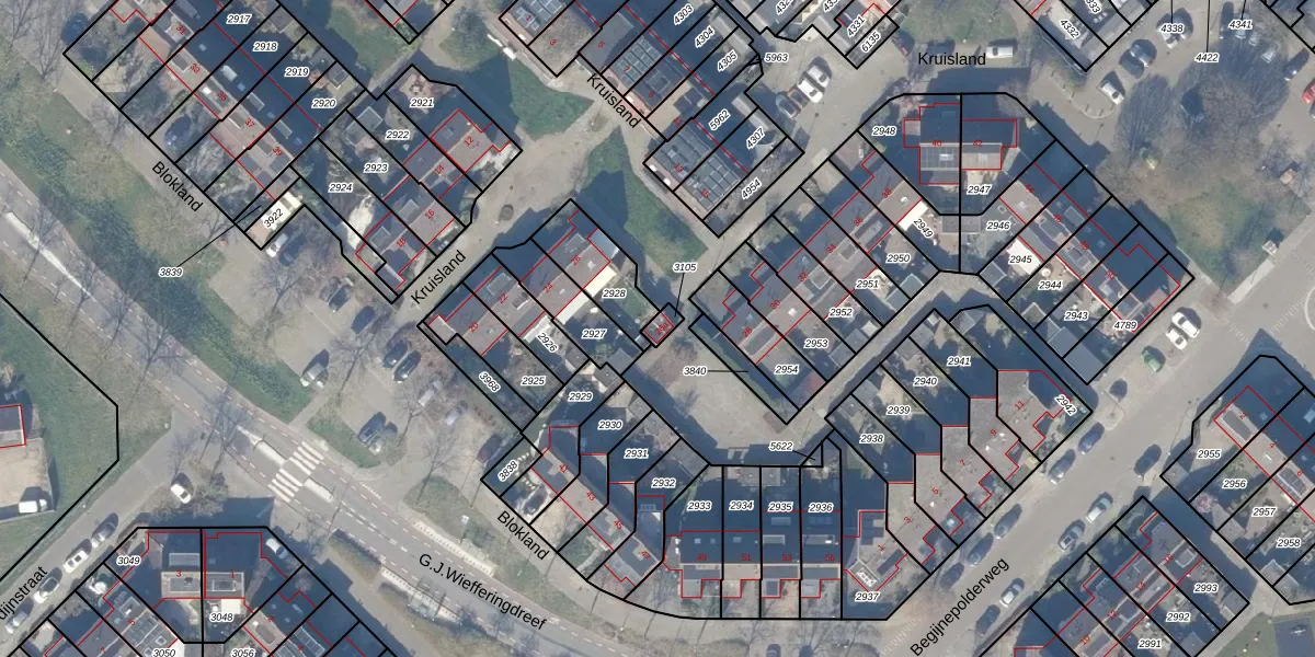 Gebruik de zoekbalk of klik op een perceel voor informatie over de adressen binnen dit perceel.