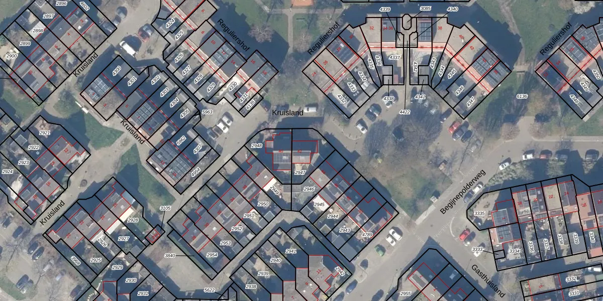 Het perceel waarop Kruisland 42 staat heeft een oppervlakte van 177 m². Dit is een middelgroot perceel. De perceeloppervlakte wordt geregistreerd door het Kadaster. Gedetailleerde informatie over de maten van dit perceel kunt u vinden in het rapport Kadastrale kaart met maatvoering van Kruisland 42.