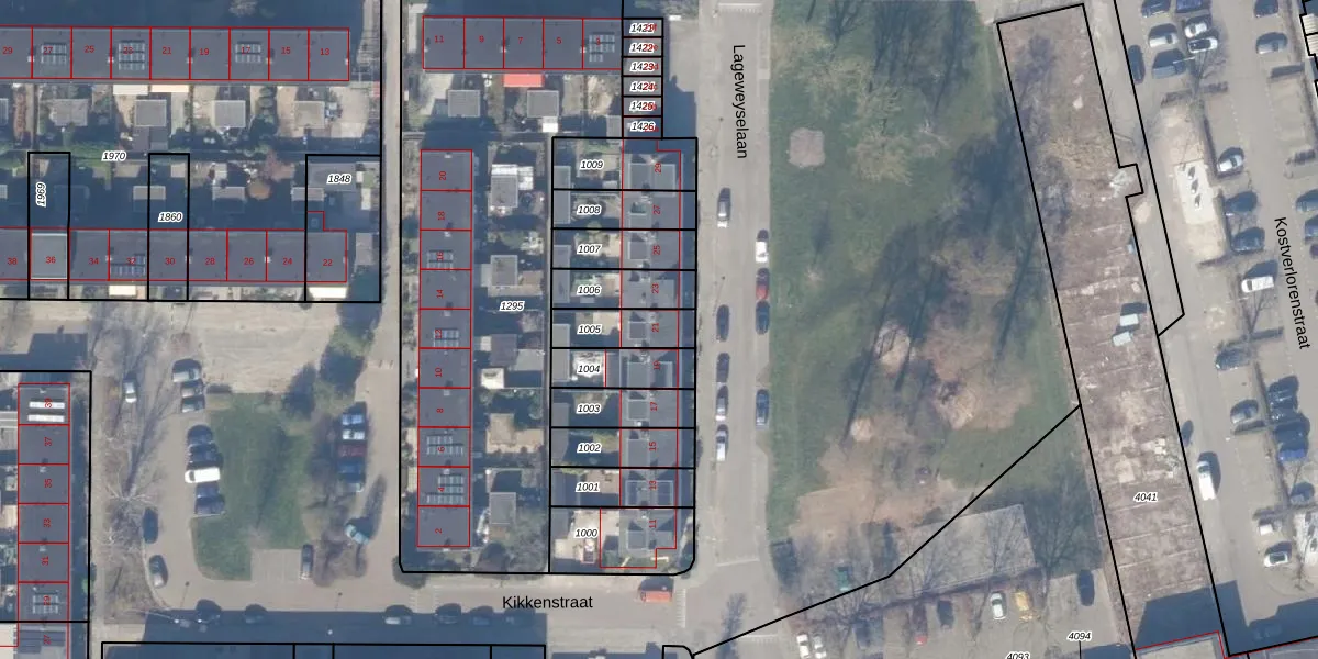 Lageweyselaan 21 is gelegen op kadastraal perceel WEE02C1005. Deze kadastrale aanduiding is uniek en wordt gebruikt door het Kadaster om eigendomsrechten en andere zakelijke rechten vast te leggen. Het perceel maakt onderdeel uit van de kadastrale gemeente Weesp.