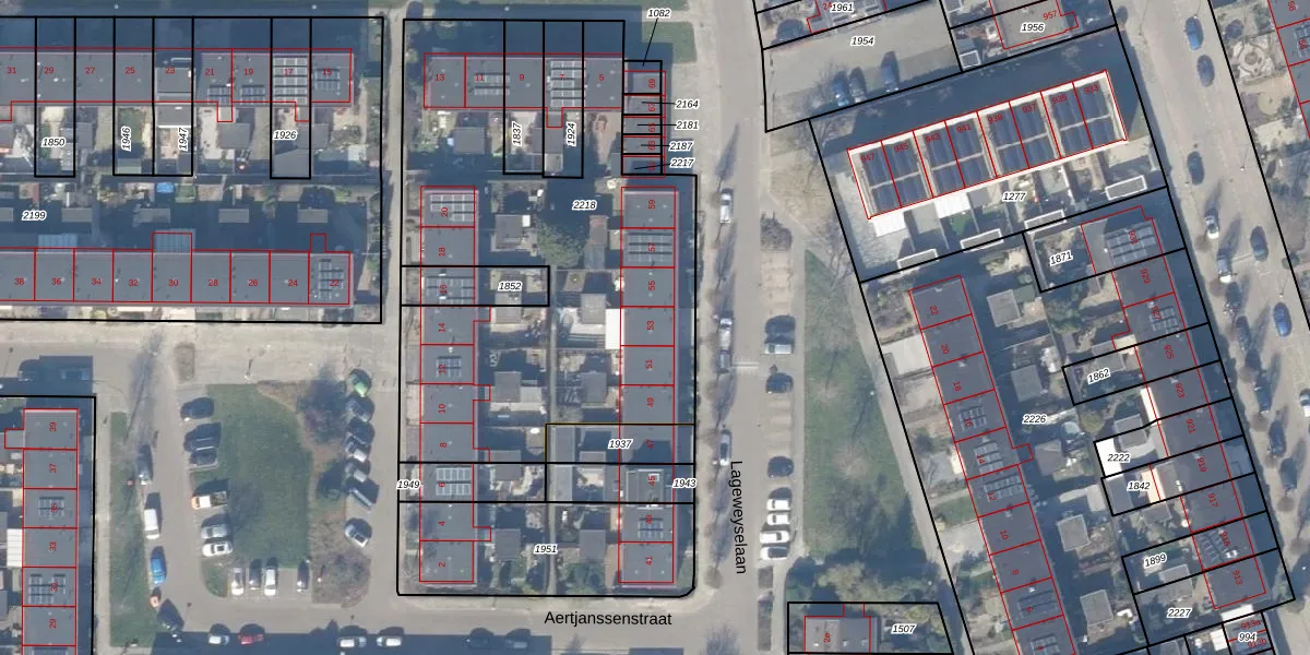 Lageweyselaan 53 is gelegen op kadastraal perceel WEE02C2218. Deze kadastrale aanduiding is uniek en wordt gebruikt door het Kadaster om eigendomsrechten en andere zakelijke rechten vast te leggen. Het perceel maakt onderdeel uit van de kadastrale gemeente Weesp.