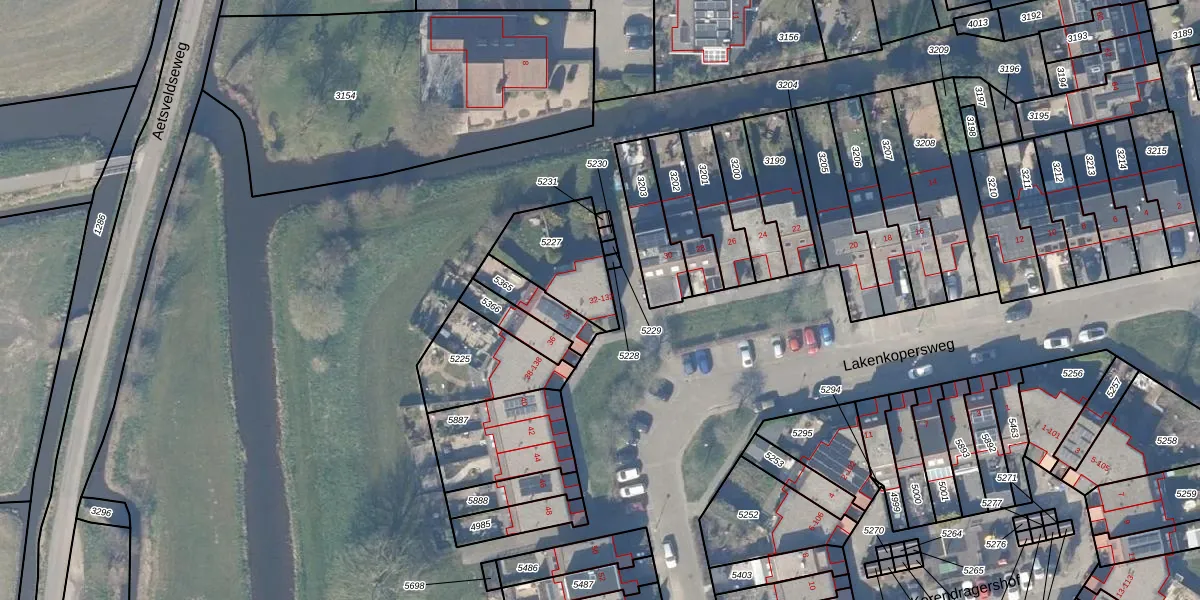 Het perceel waarop Lakenkopersweg 32 staat heeft een oppervlakte van 263 m². Dit is een middelgroot perceel. De perceeloppervlakte wordt geregistreerd door het Kadaster. Gedetailleerde informatie over de maten van dit perceel kunt u vinden in het rapport Kadastrale kaart met maatvoering van Lakenkopersweg 32.