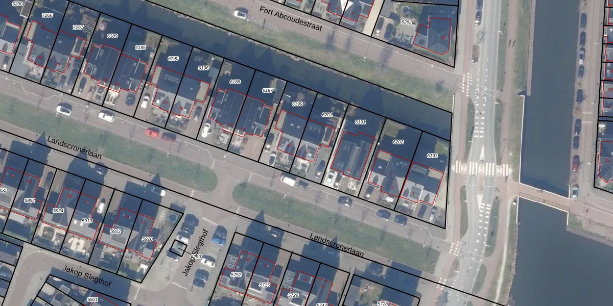 Gebruik de zoekbalk of klik op een perceel voor informatie over de adressen binnen dit perceel.