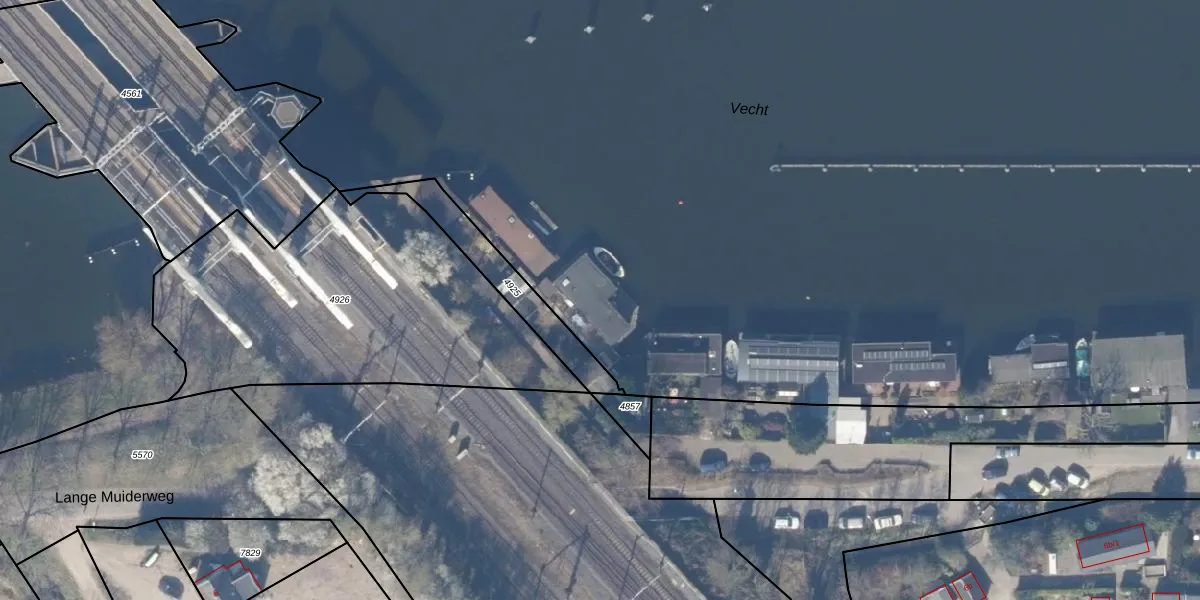 Het adres is gelegen op perceel 4564 in de sectie B en de kadastrale gemeente Weesp. De kadastrale aanduiding is aldus WEE02-B-4564. De gemiddelde perceeloppervlakte in de kadastrale gemeente Weesp is 2518,58 m². Dit perceel is met zijn 3,6 ha dus groter dan gemiddeld. De grootste perceeloppervlakte in de kadastrale gemeente is 27,8 ha. De kleinste oppervlakte bedraagt 0 m². Er zijn 19 adressen aanwezig op het perceel. De huidige grenzen van het perceel zijn digitaal in de Basisregistratie Kadaster (BRK) geregistreerd op 02-06-2017.