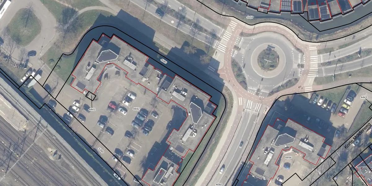 Het adres is gelegen op perceel 4442 in de sectie B en de kadastrale gemeente Weesp. De kadastrale aanduiding is aldus WEE02-B-4442. De gemiddelde perceeloppervlakte in de kadastrale gemeente Weesp is 2523,05 m². Dit perceel is met zijn 4154 m² dus groter dan gemiddeld. De grootste perceeloppervlakte in de kadastrale gemeente is 27,8 ha. De kleinste oppervlakte bedraagt 0 m². Op het perceel zijn 14 adressen aanwezig. In de Basisregistratie Kadaster (BRK) werden de grenzen van het perceel geregistreerd op 07-04-2006.