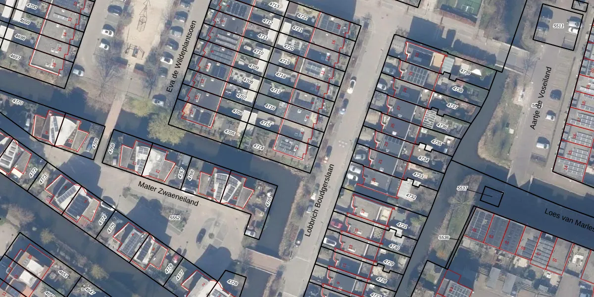 Gebruik de zoekbalk of klik op een perceel voor informatie over de adressen binnen dit perceel.