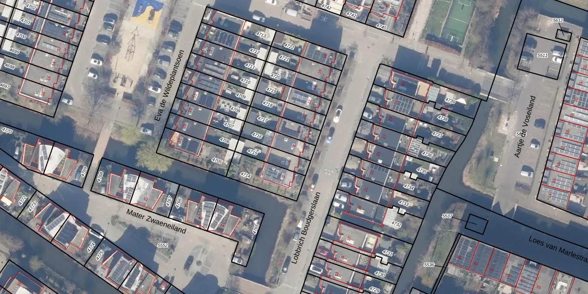 Lobbrich Boudgerslaan 6 is gelegen op kadastraal perceel WEE02B4716. Deze kadastrale aanduiding is uniek en wordt gebruikt door het Kadaster om eigendomsrechten en andere zakelijke rechten vast te leggen. Het perceel maakt onderdeel uit van de kadastrale gemeente Weesp.