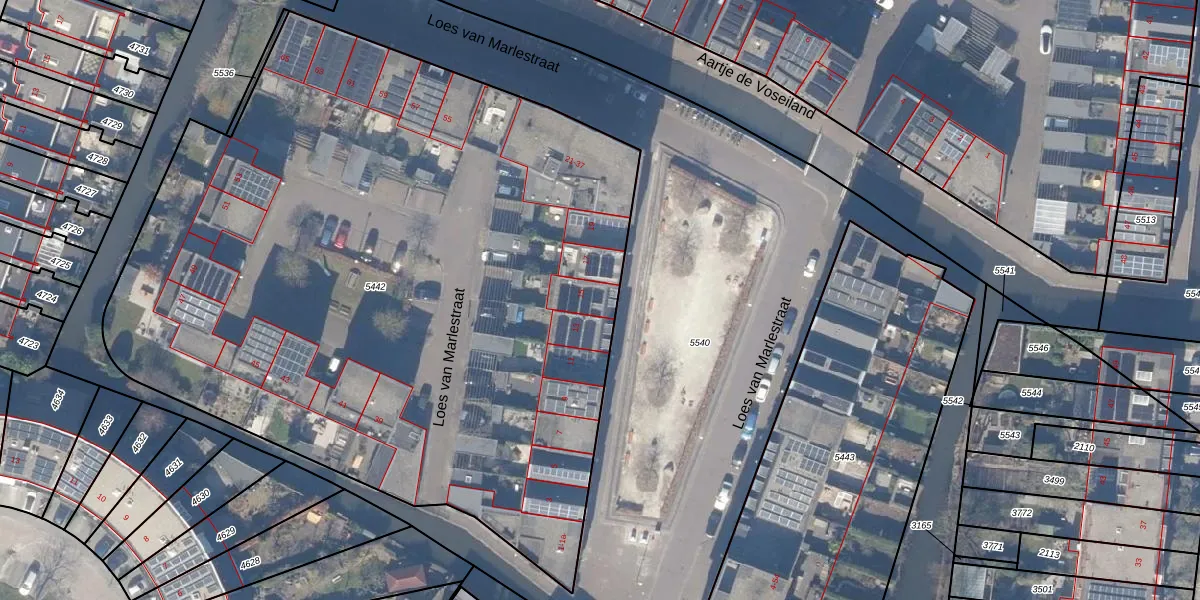 Loes van Marlestraat 15 is gelegen op kadastraal perceel WEE02B5442. Deze kadastrale aanduiding is uniek en wordt gebruikt door het Kadaster om eigendomsrechten en andere zakelijke rechten vast te leggen. Het perceel maakt onderdeel uit van de kadastrale gemeente Weesp.