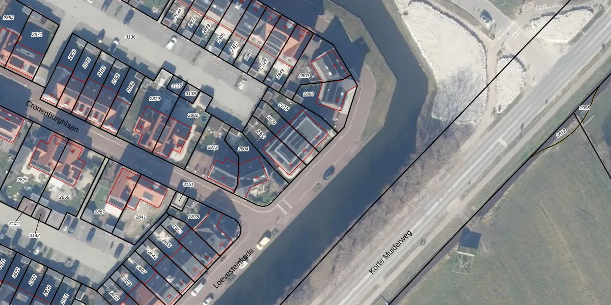 Gebruik de zoekbalk of klik op een perceel voor informatie over de adressen binnen dit perceel.