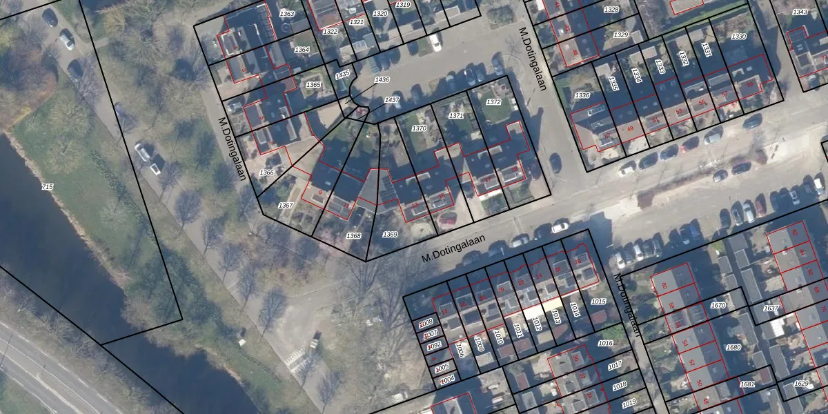 M.Dotingalaan 13 is gelegen op kadastraal perceel WEE02E1369. Deze kadastrale aanduiding is uniek en wordt gebruikt door het Kadaster om eigendomsrechten en andere zakelijke rechten vast te leggen. Het perceel maakt onderdeel uit van de kadastrale gemeente Weesp.